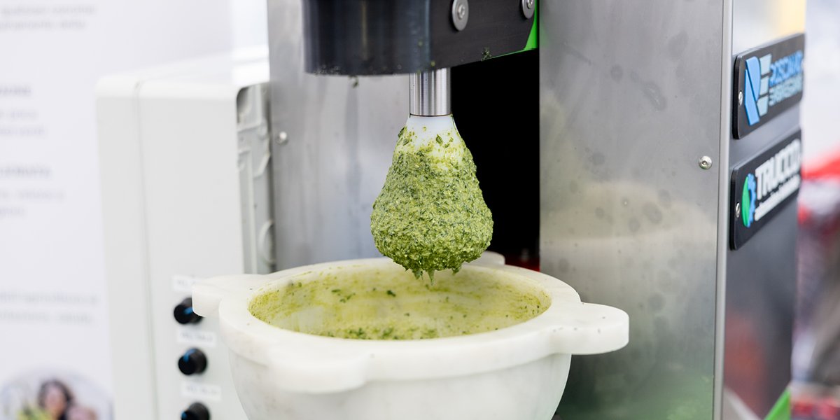 Abbiamo reinventato il mortaio. Sì, proprio lui. Dopo anni di test, errori e tenacia, abbiamo brevettato il primo mortaio che automatizza l’intero processo di produzione del pesto, capace di replicare la gestualità antica del pestello ed esaltare ogni aroma senza rovinarlo. Zero lame, zero surriscaldamento. Solo rispetto.